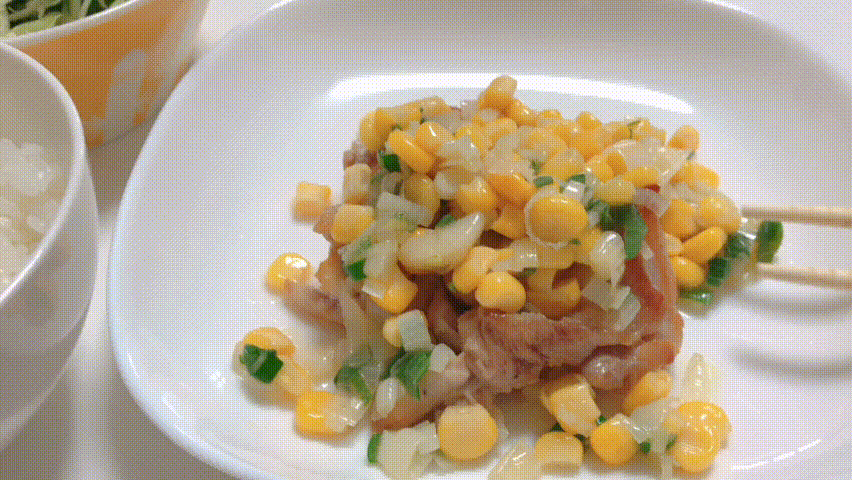 チキンステーキにかけた、ネギ塩コーンは、他のレシピにも応用可能だと思います。
