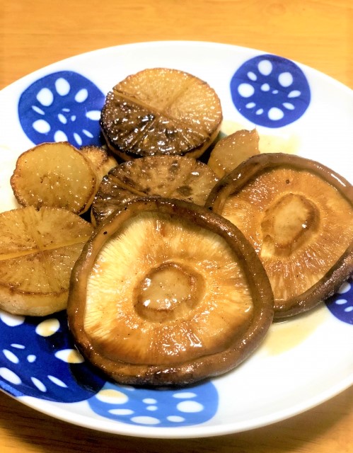 ごま油、醤油、みりんとからめて照り焼き風にした、大根ステーキ。