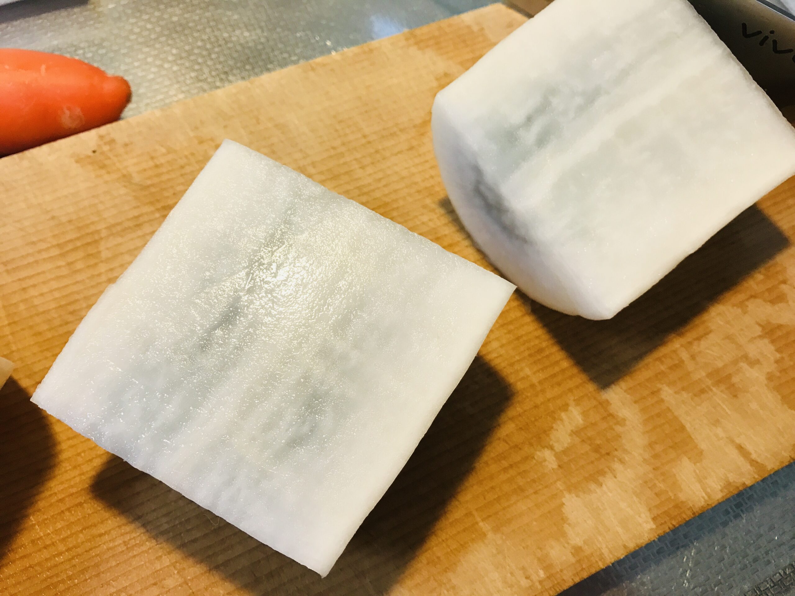 黒っぽいグレーの色は消滅し、いつも通りおいしそうな透き通った大根になってました。
