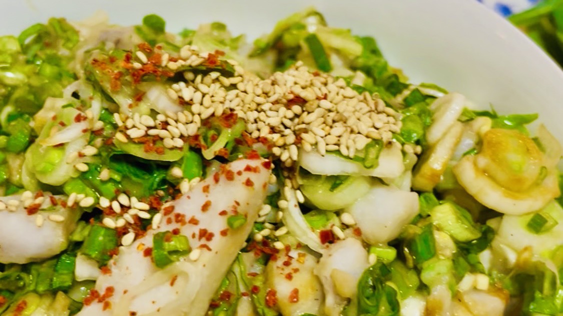 春菊バージョン:ねぎとセレベスのピリ辛和え|大阪料理代行おマミ