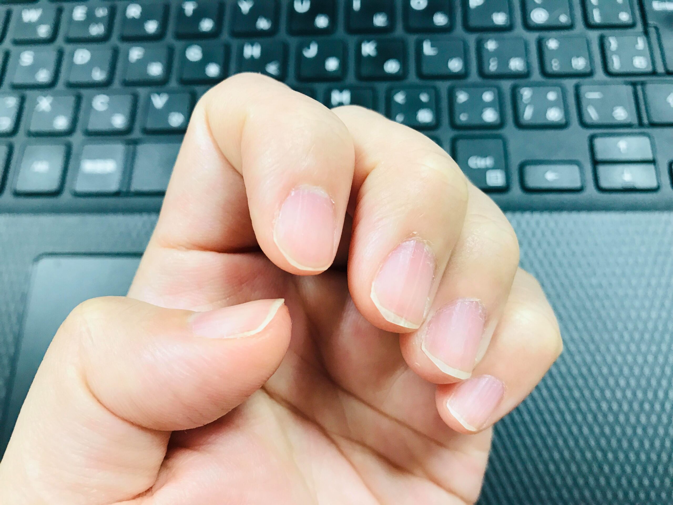 前は、伸びるとカンタンに割れるぐらい薄っぺらい爪だったんですが、今は少し硬くなり、缶ジュースのタブも開けられるぐらいしっかりしました。