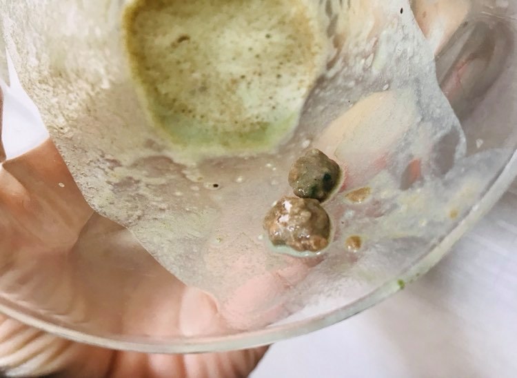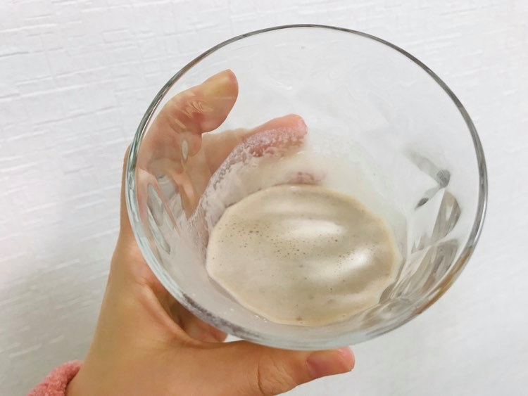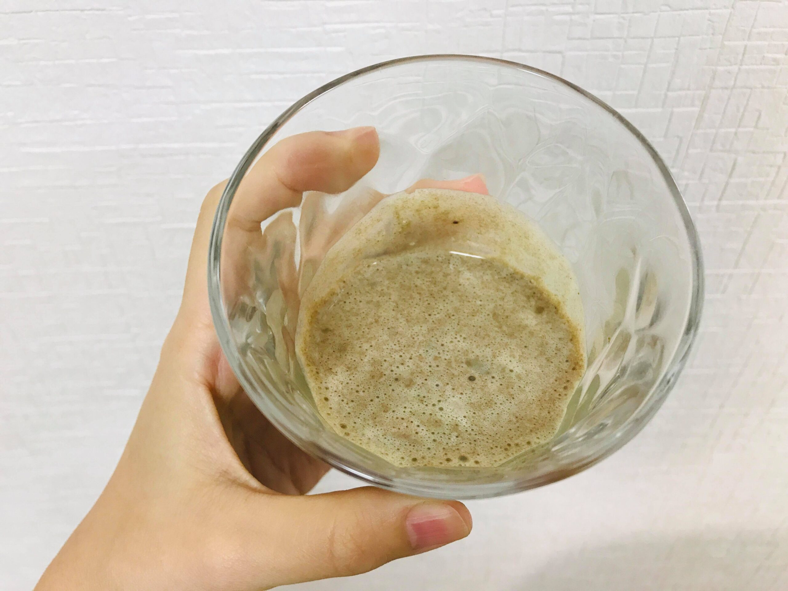 抹茶のような、青汁のような…?という感じ。まぁ、青汁に美味しさを求めること自体、無理があるので仕方ないんですが、溶け残りのダマがありまして。