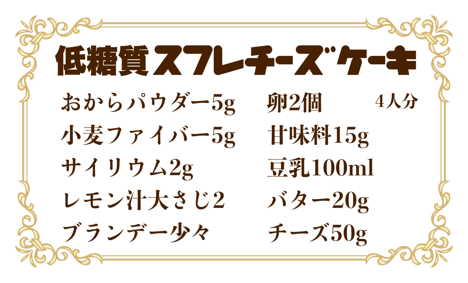 材料:糖質ほぼゼロ!ピザ用チーズで作る低糖質スフレチーズケーキ|おからパウダー・小麦ファイバー・サイリウム使用