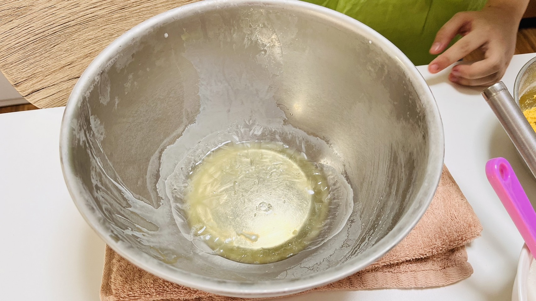 卵白を冷凍庫で冷やしておきましょう。