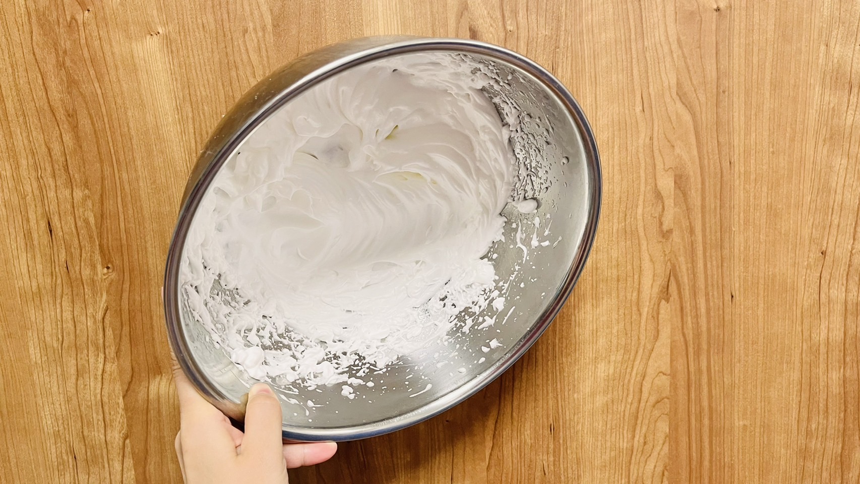 逆さまにしても落ちてこないぐらい、しっかり固めのメレンゲに泡立てるのがコツ!