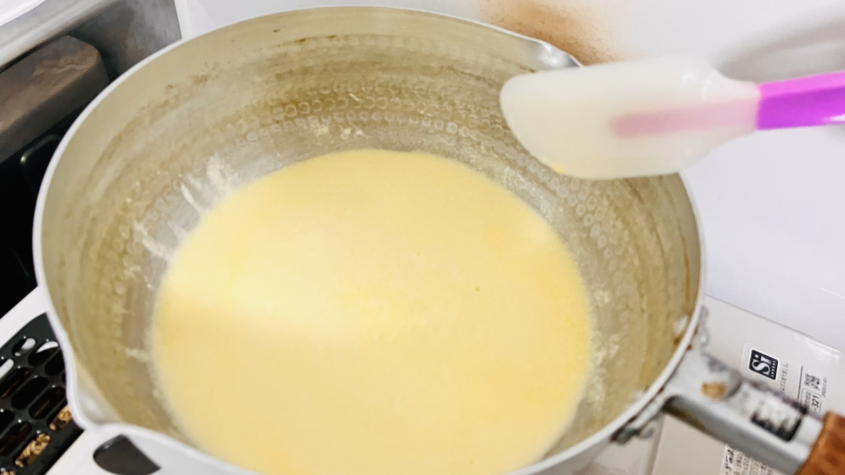 - 豆乳を煮溶かし粉類を混ぜる