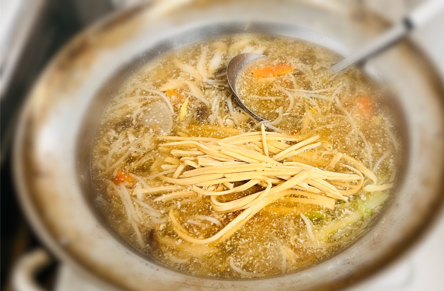 麺はゆがくと太くなるため、この時点でなるべく薄くしておくと、食べやすいですよ。